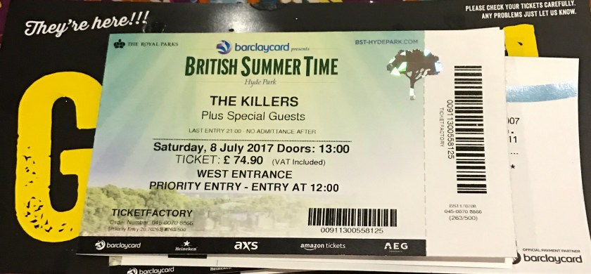 I opened the mail a couple of days ago and found my concert tickets for the Barclaycard British Summer Time concert at Hyde Park on the 8th of July, headlined by my favourite band in the world, The Killers!!!