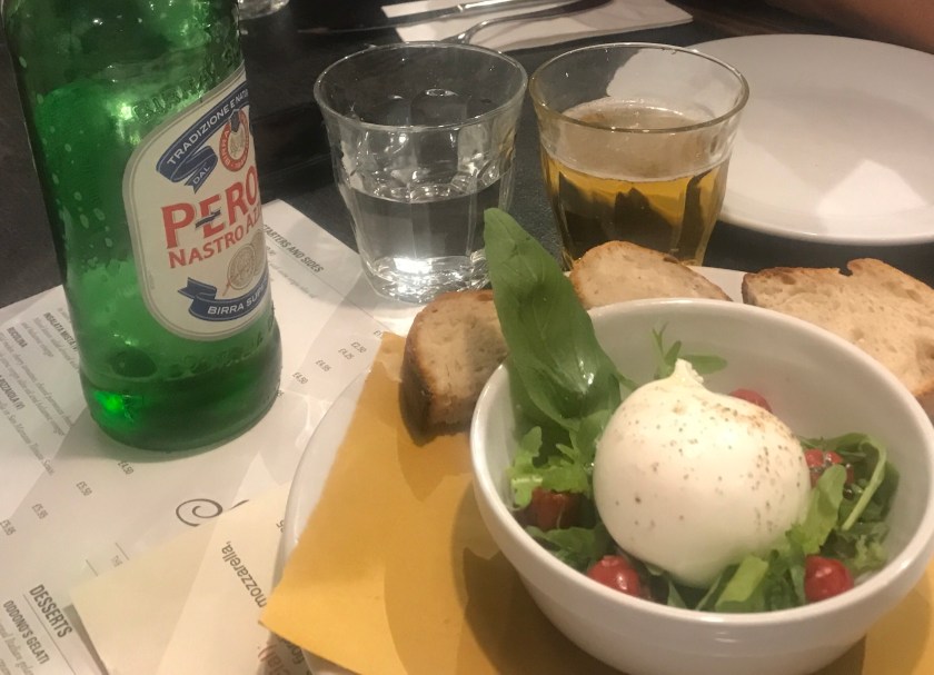 I was already excited looking at the menu. For starters, we had this soft mozarella dish that I’ve now forgotten the name of (I know it starts with a B) and it was so delicious I felt like I was having a religous experience.